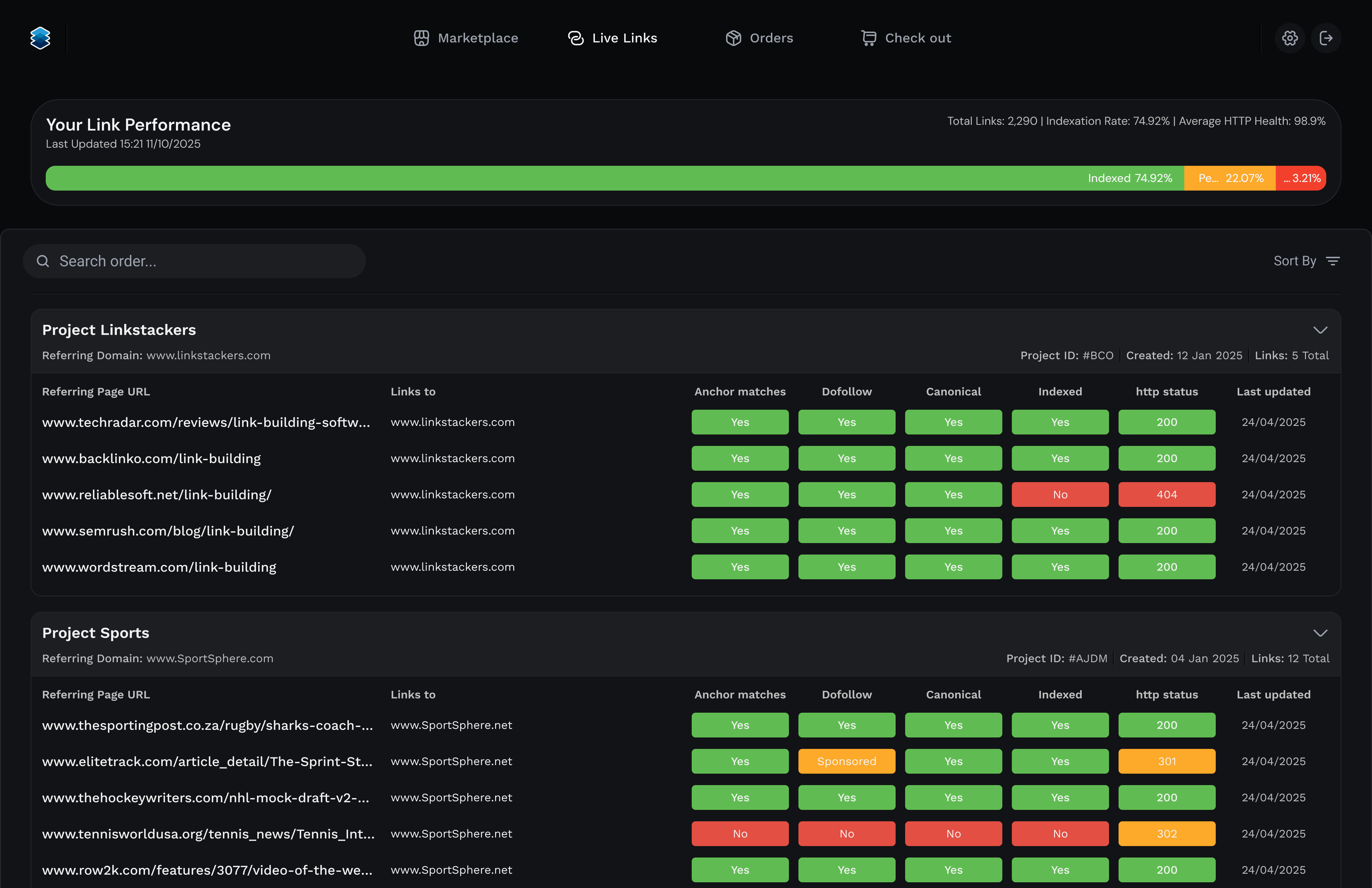 Add backlinks purchased elsewhere as well to monitor alongside your orders on Linkstackers for a full view of your portfolio.